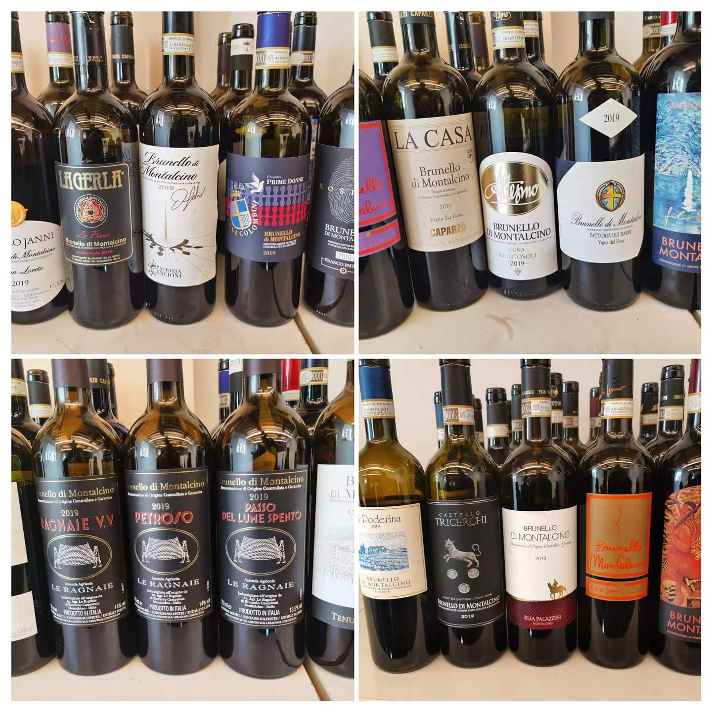 Bonacchi 2019 Brunello di Montalcino; Centolani 2018 Brunello di Montalcino Riserva Pietranera; Donna Olga 2019 Brunello di Montalcino; Greppone Mazzi 2018 Brunello di Montalcino Riserva; La Palazzetta 2018 Brunello di Montalcino Riserva; La Poderina 2019 Brunello di Montalcino; Martoccia 2019 Brunello di Montalcino; Palazzo 2019 Brunello di Montalcino; Patrizia Cencioni 2018 Brunello di Montalcino Riserva 1 2 3; Pian delle Quercie 2018 Brunello di Montalcino Riserva; Piccinni 2019 Brunello di Montalcino; Poggio Landi 2019 Brunello di Montalcino; Villa Poggio Salvi 2019 Brunello di Montalcino.