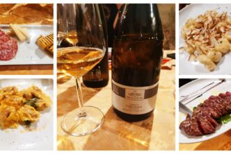 The wines we chose for our lunch were about as classic as possible. Jean Sipp is a solid local producer, and his Jean Sipp 2022 Muscat Réserve Alsace and Jean Sipp 2020 Pinot Gris Alsace were just fine and matched well with the pies (not surprisingly, the former wine was best with the escargot version and the latter wine showed best with the classic gratinée version). Normally, I prefer a good Sylvaner or even an Edelzwicker with my tarte flambées, but on this day these two bottles acquitted themselves well. Both true-to type, neither was the last word in complexity but they provided clean, precise flavours that matched well with our food choices. We finished off our lunch with a couple of glasses each of excellent eaux-de-vie (Vieille Mirabelle and Kirsch, but I also couldn’t resist the Marc de Gewurztraminer) from the local, artisanal, Metté distillery (located in Ribeauvillé’s rue des Tanneurs, it deserves a visit), and then slowly made our way to our scheduled afternoon tasting (at a winery located in the middle of town, such that we knew we did not need to drive anywhere after a lunch of enthusiastic libations.